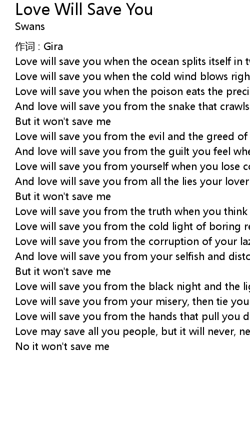 | Love will save you from yourself when you lose control | |