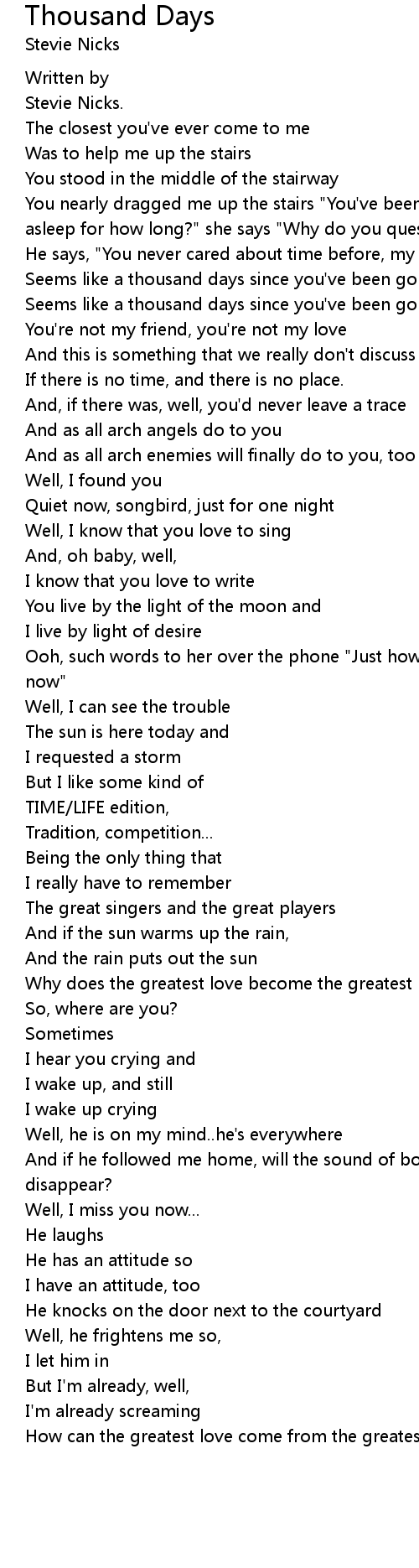 You nearly dragged me up the stairs "You've been asleep." "Well, I've been asleep for how long?" she says "Why do you question me?" |