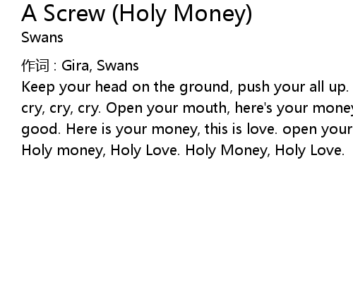 | Song | A Screw (Holy Money) |
