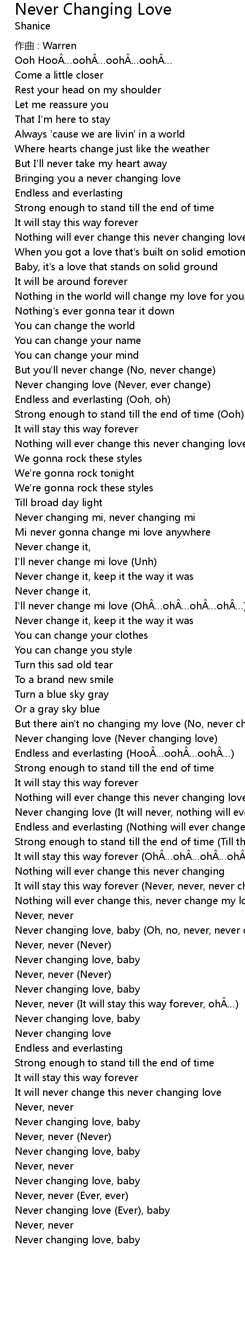 | Never changing love, baby (Oh, no, never, never changing love) | |