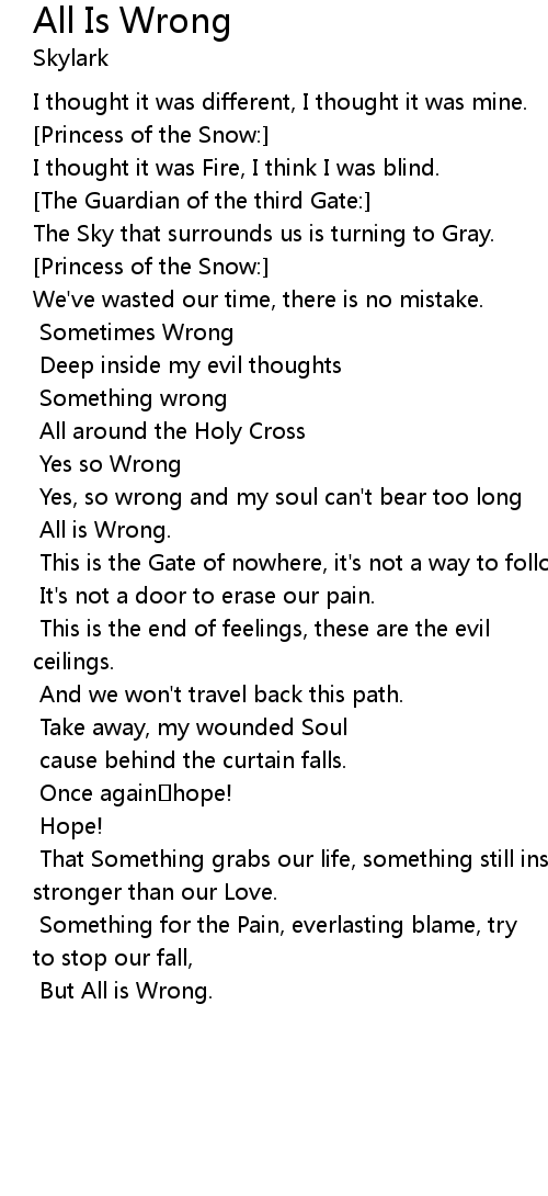 | [Princess of the Snow:] Yes, so wrong and my soul can't bear too long | |