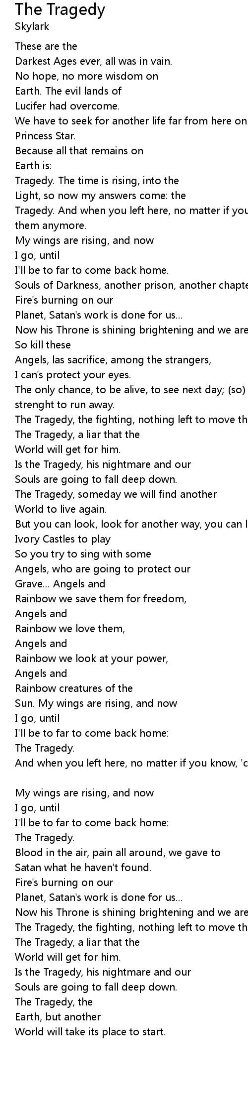 The Tragedy, the fighting, nothing left to move this blame on me. |