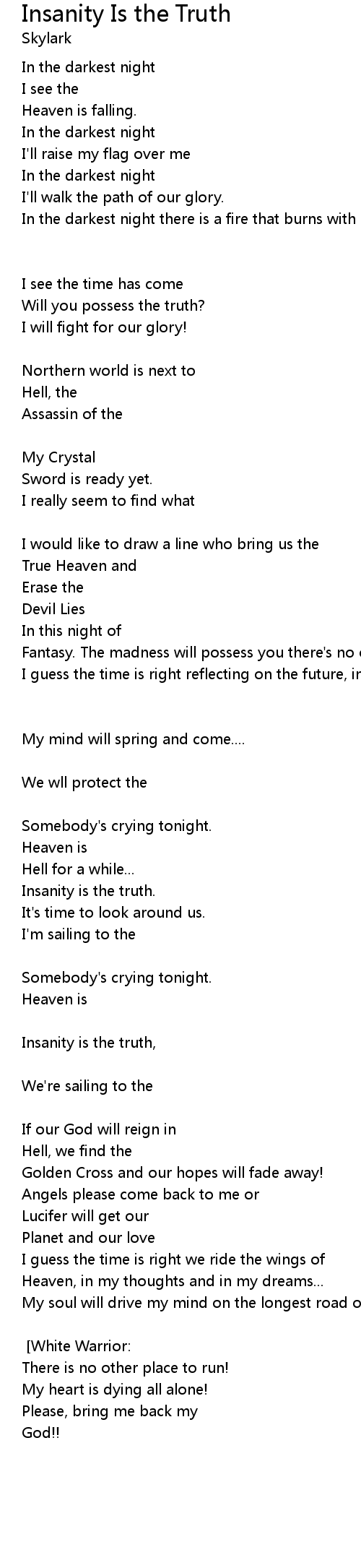 Insanity is the truth, |