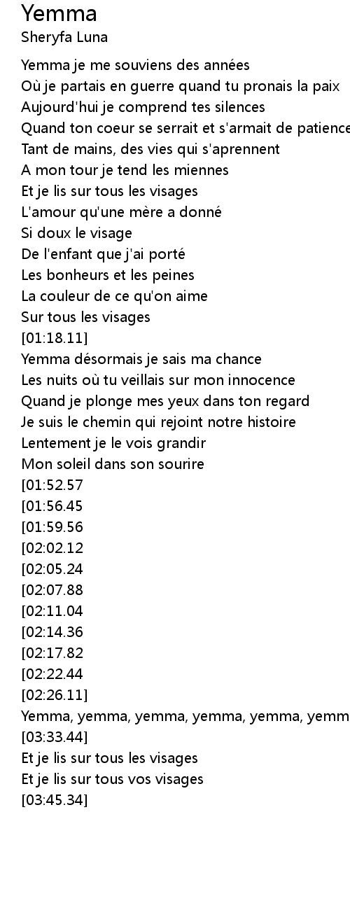 | [01:20.28] | Yemma dé sormais je sais ma chance |