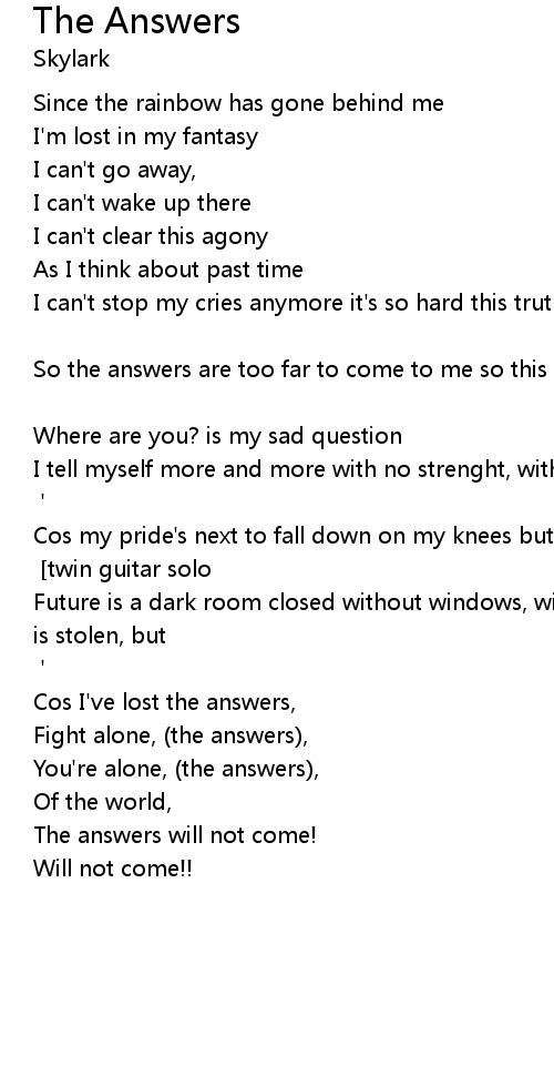 So the answers are too far to come to me so this fire is too strong to disappear [instrumental chorus / viola solo] |