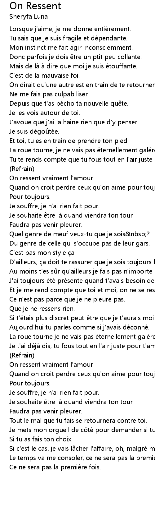 | Depuis que t' as pé cho ta nouvelle qu te. | |
