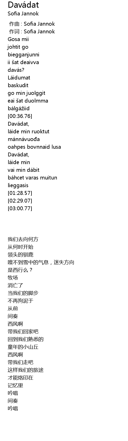| [00:00.00] | 作曲 : Sofia Jannok |