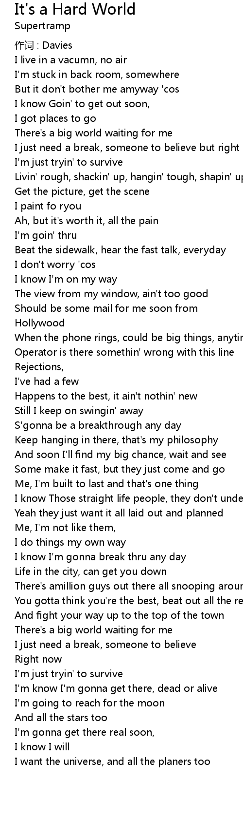 | Song | It's a Hard World |
