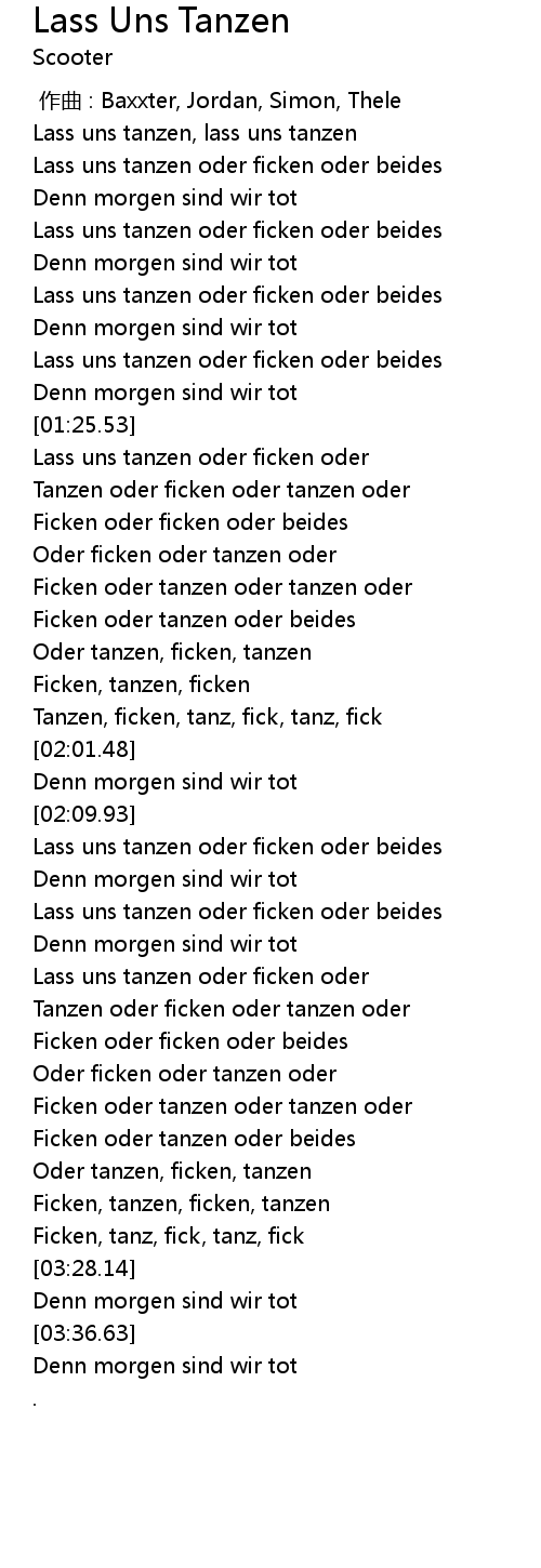 | [03:16.52] | Ficken oder tanzen oder tanzen oder |