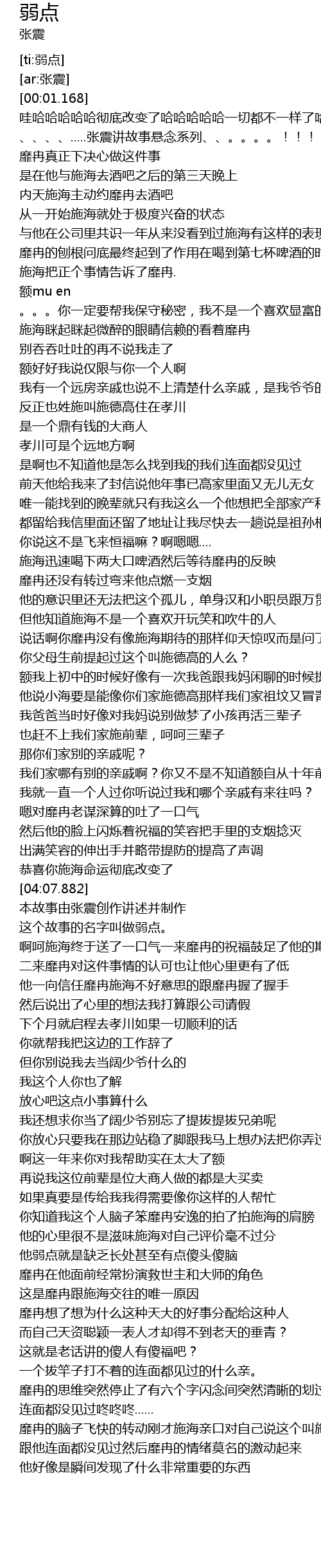 | [04:19.908] | 本故事由张震创作讲述并制作 |