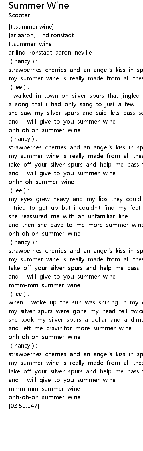 | [03:13.845] | strawberries cherries and an angel's kiss in spring |