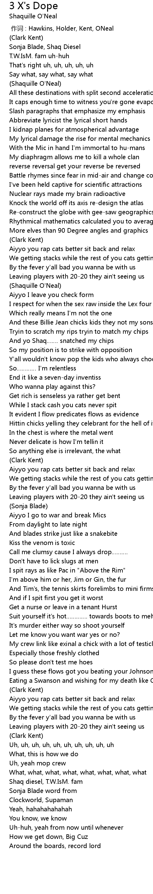 | [03:11.44] | Shaq diesel, T.W.IsM. fam |