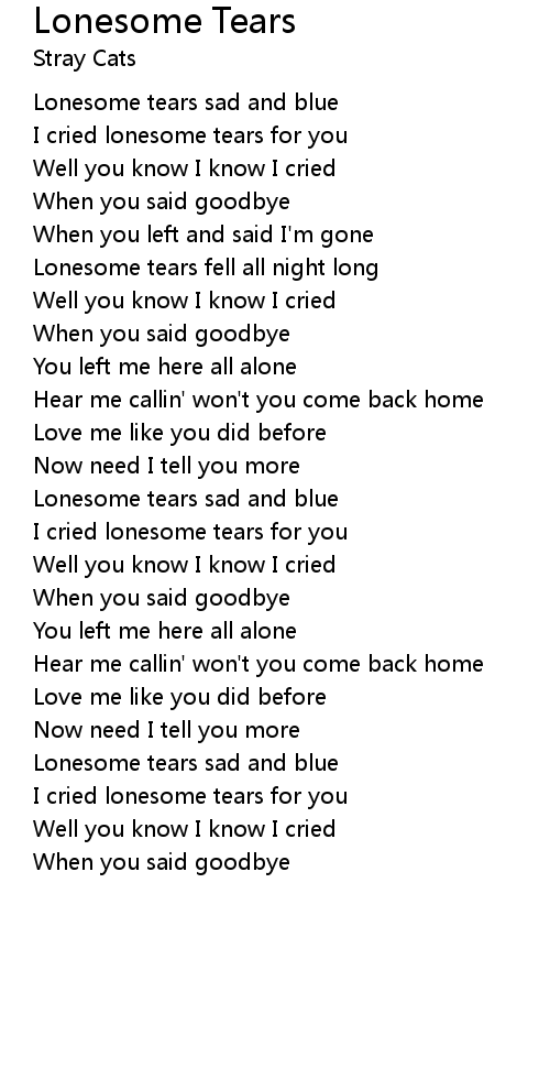 Lonesome tears sad and blue |