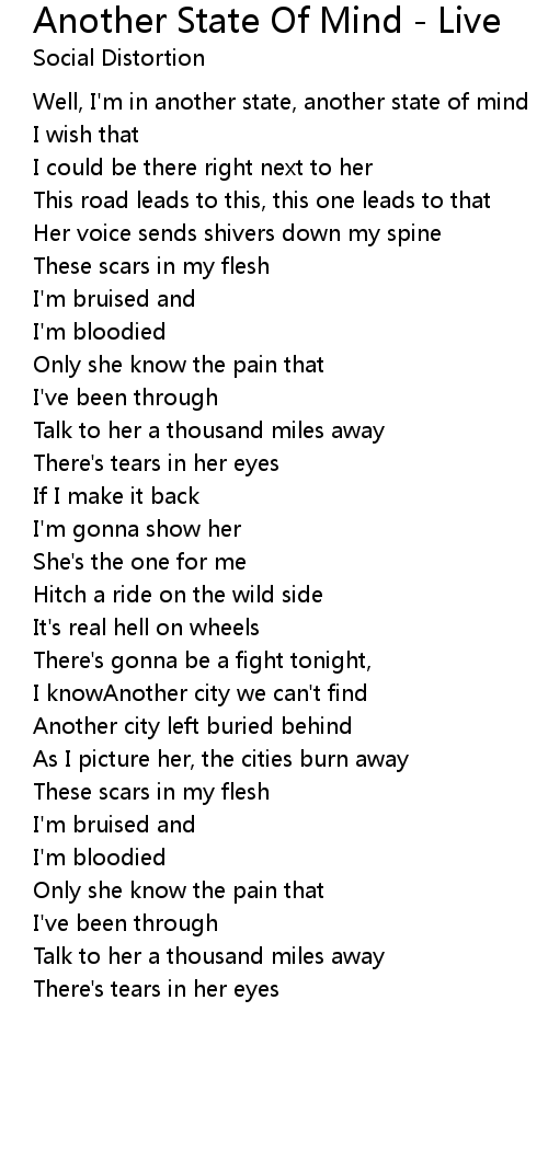 Well, I'm in another state, another state of mind |