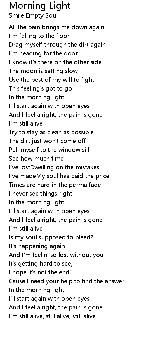 And I feel alright, the pain is gone |