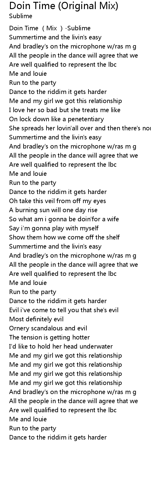| [00:00.00] | Doin Time (Mix )-Sublime |