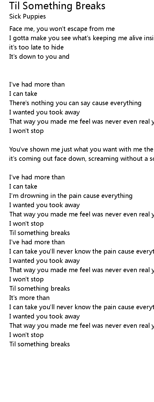 You've shown me just what you want with me the lie everyone believes and now it's coming out face down, screaming without a sound you oughta know by now it's gonna come around [Chorus] |