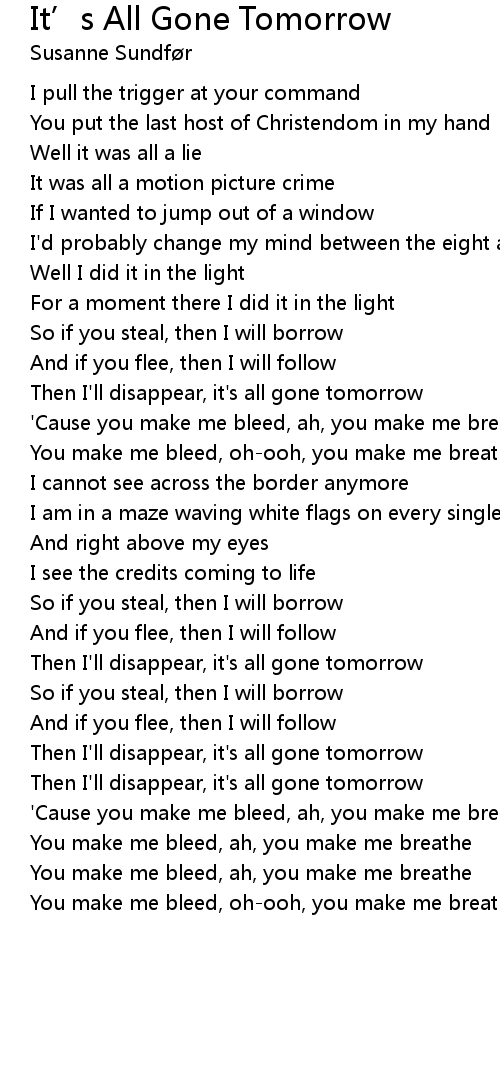 Then I'll disappear, it's all gone tomorrow |