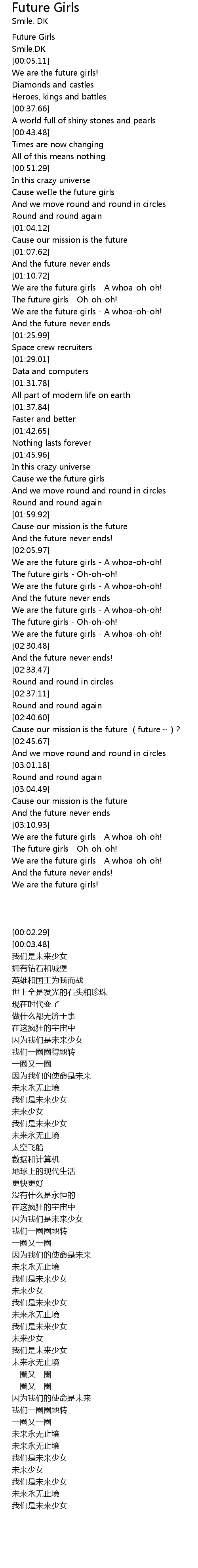 | [01:15.66] | The future girls - Oh-oh-oh! |
