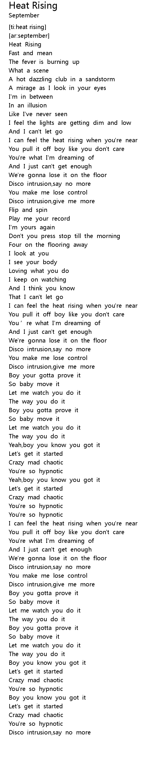 | [01:43.88] | I can feel the heat rising when you' re near |