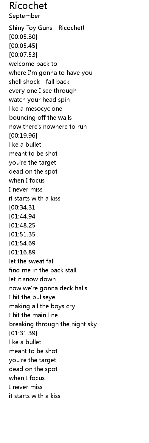 | [01:58.12][01:44.94][00:47.61][00:34.49] | she ricochets |