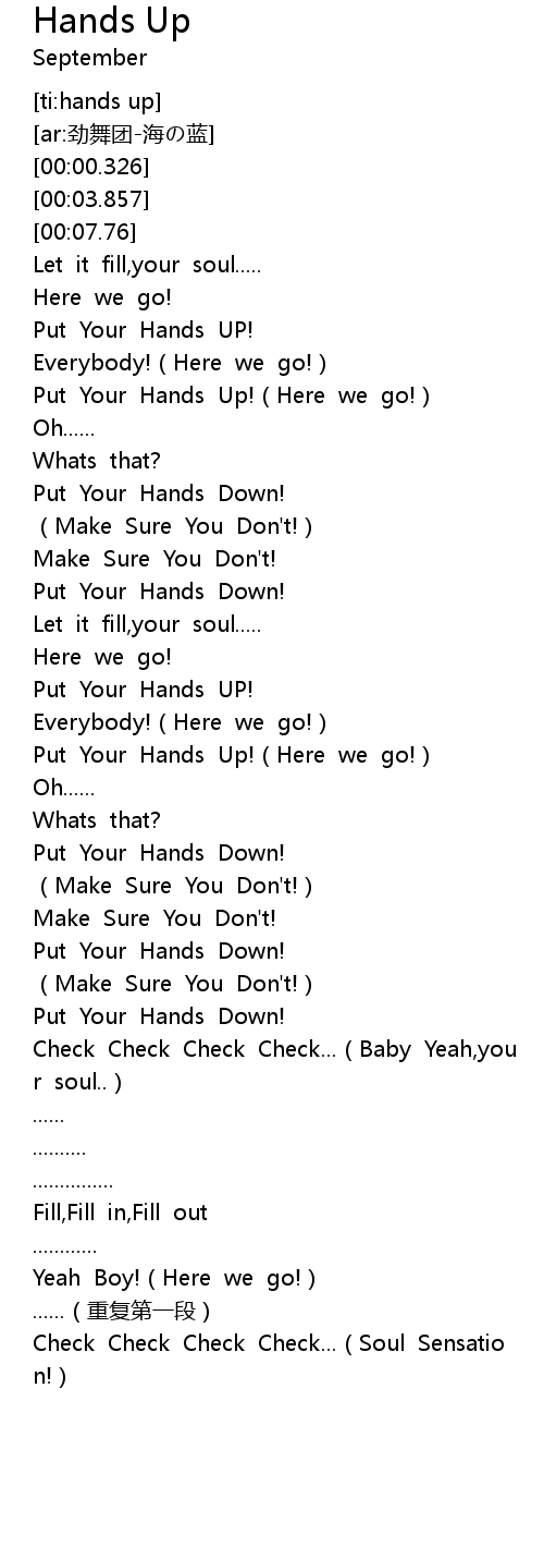 | [00:48.956] | Put Your Hands Up!(Here we go!) |