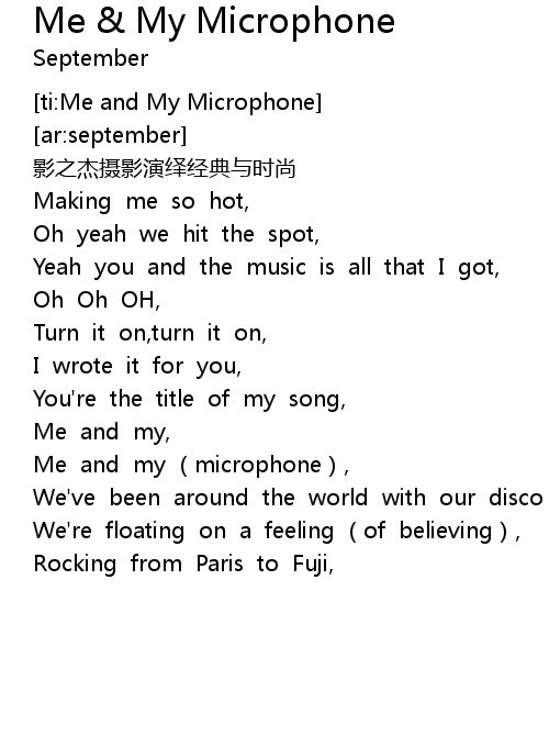 | [00:06.20] | Yeah you and the music is all that I got, |