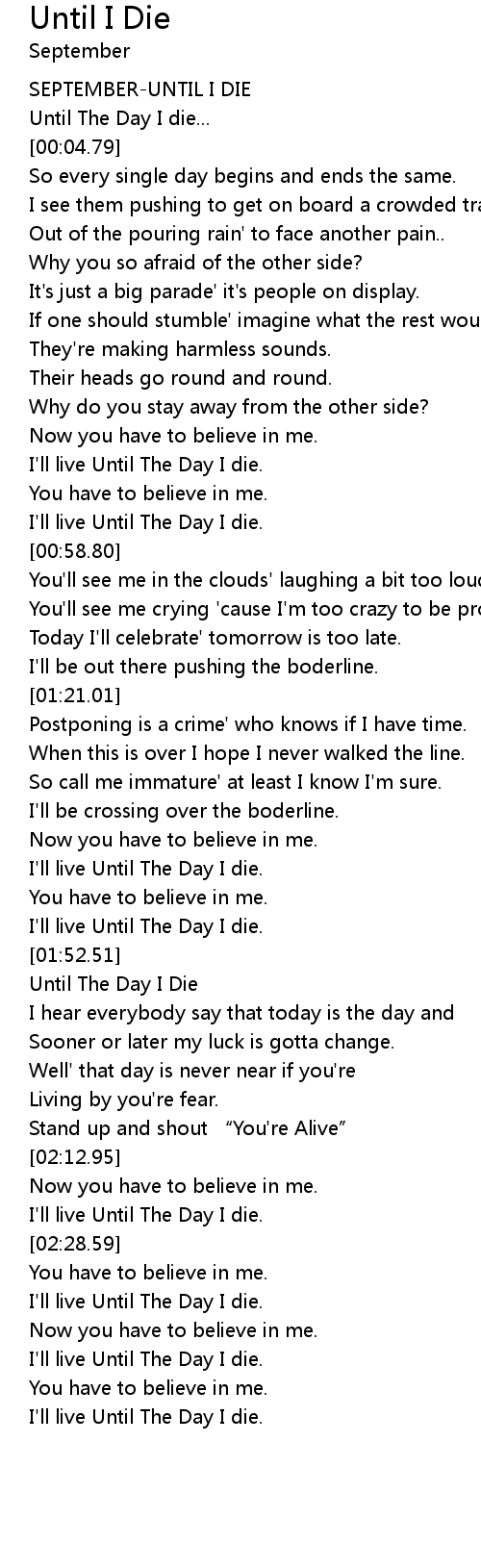 | [00:01.86] | Until The Day I die... |