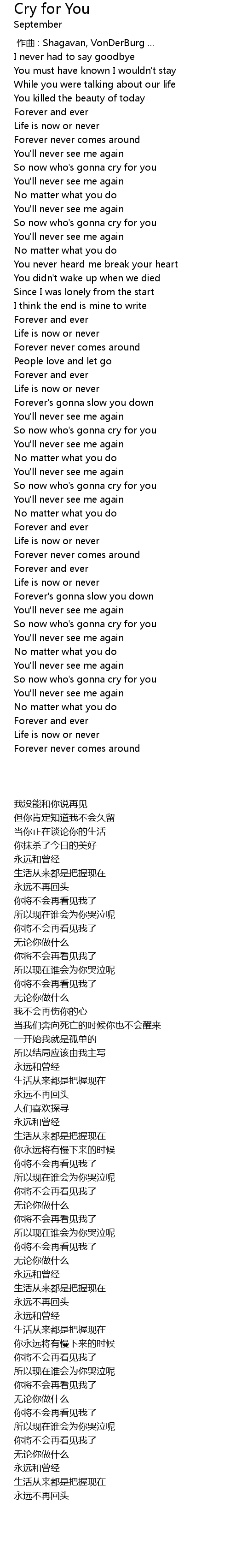 | [02:53.340] | So now who' s gonna cry for you |