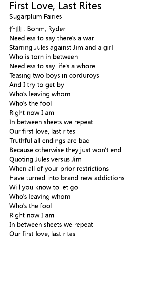 | Song | First Love, Last Rites |