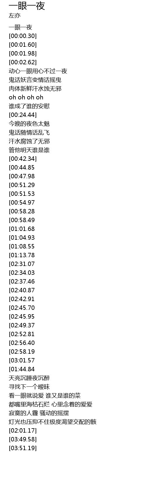 | [00:00.01] | 一眼一夜 |