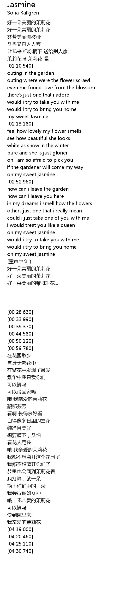 | [02:08.380] | my sweet Jasmine |