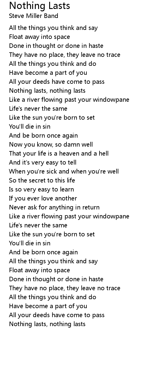 Nothing lasts, nothing lasts |