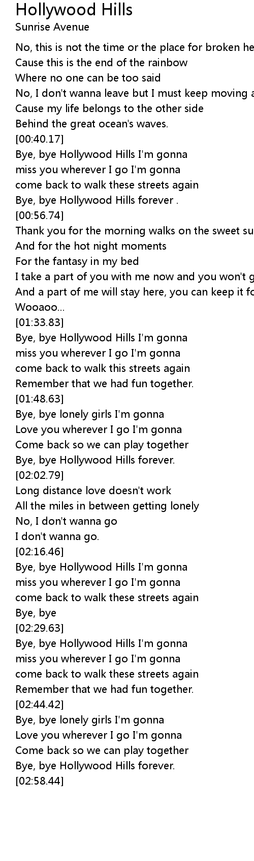Bye, bye Hollywood Hills I'm gonna |