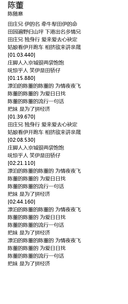 | [02:32.620] | 陈董的陈董的流行一句话 |