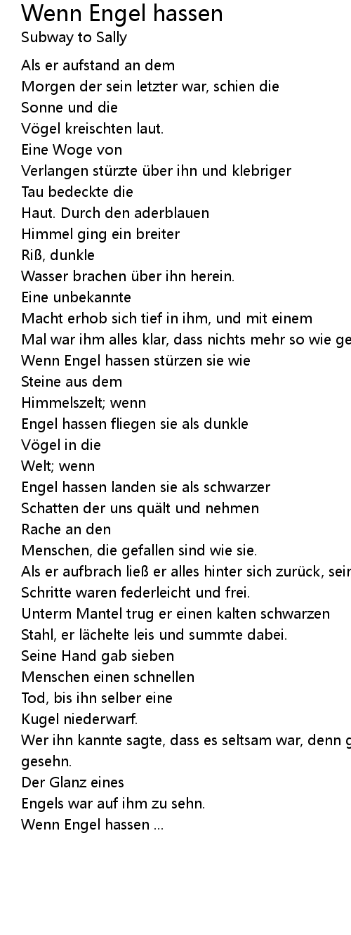 | Wer ihn kannte sagte, dass es seltsam war, denn glü cklicher hat man ihn nie gesehn. | |