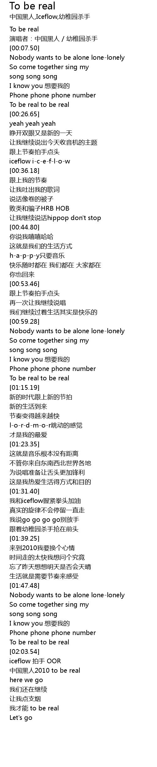 | [02:08.44] | zhong guo hei ren 2010 to be real |