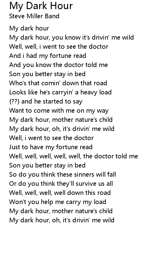 My dark hour, you know it's drivin' me wild |
