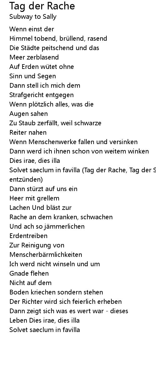 | Song | Tag der Rache |