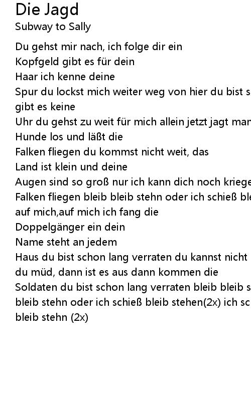 | Falken fliegen bleib bleib stehn oder ich schieß bleib stehn oder ich schieß auf mich,auf mich ich fang die | |