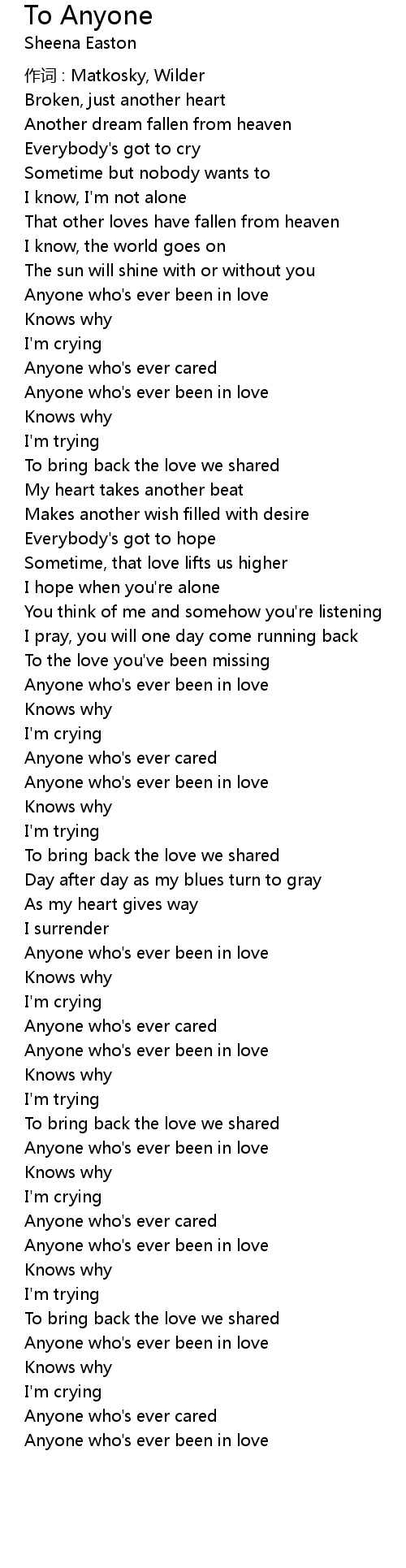 | Song | To Anyone |