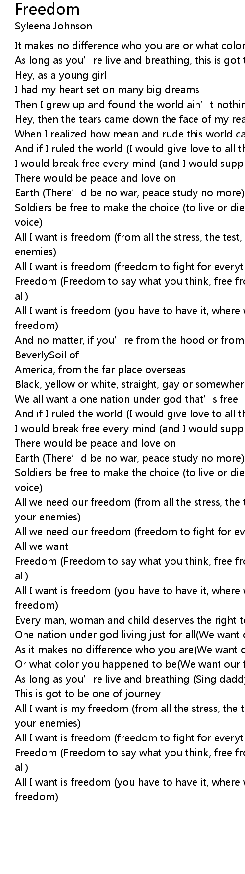 | All I want is freedom (from all the stress, the test, the mess, the lies of your enemies) | |