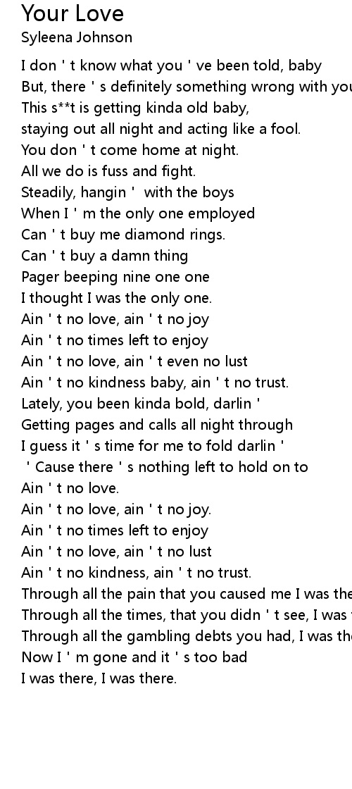 | Ain t no love, ain t no joy | |
