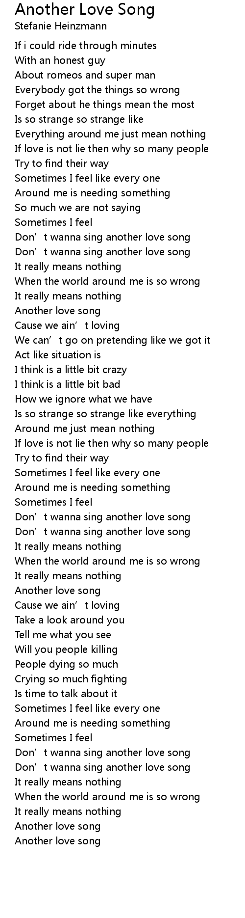 | [00:49.91] | Don’t wanna sing another love song |