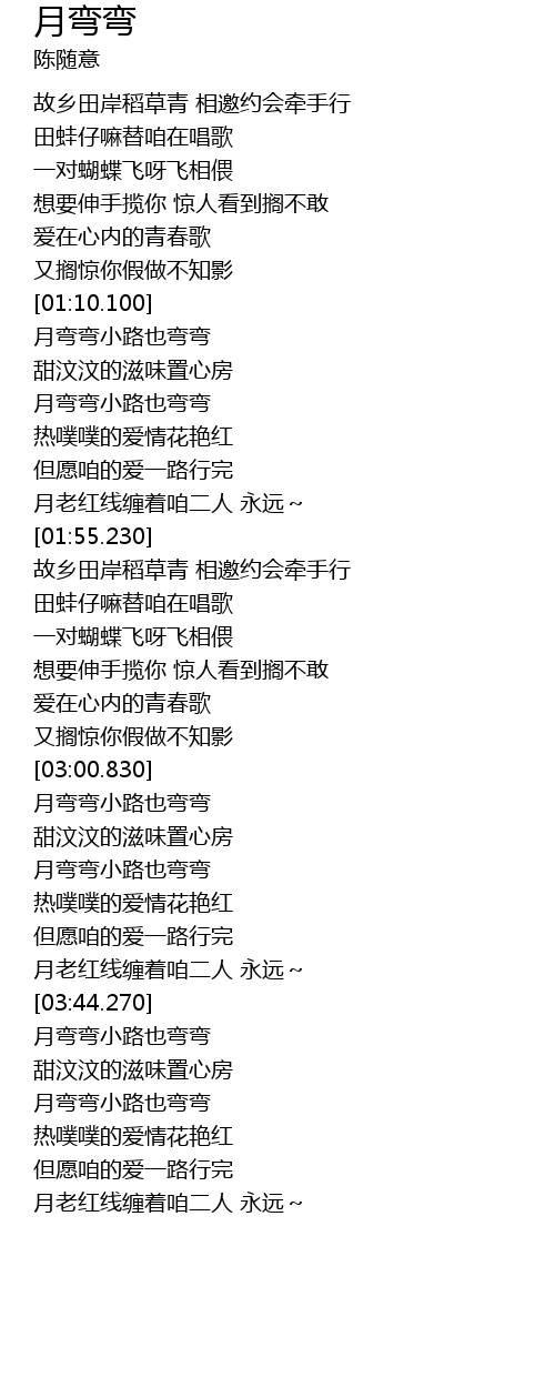 | [03:48.040] | 月弯弯小路也弯弯 |