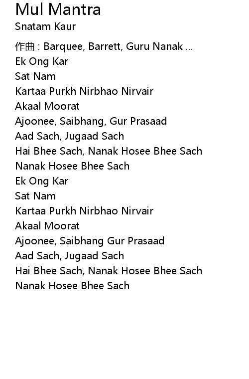 | Song | Mul Mantra |