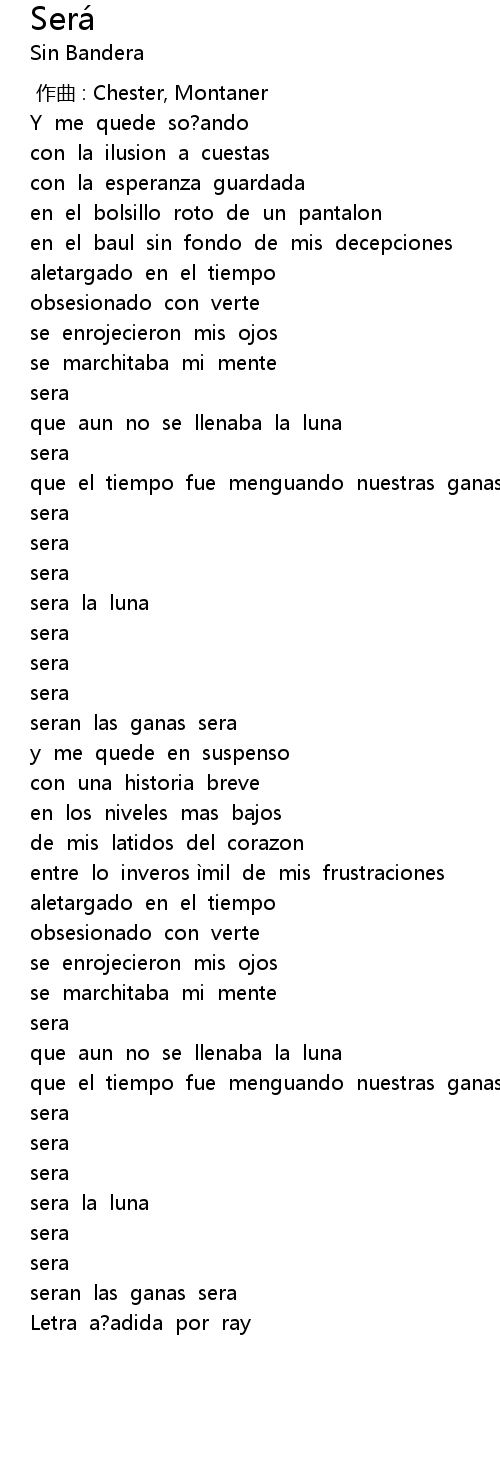 | [00:00.00] | 作曲 : Chester, Montaner |