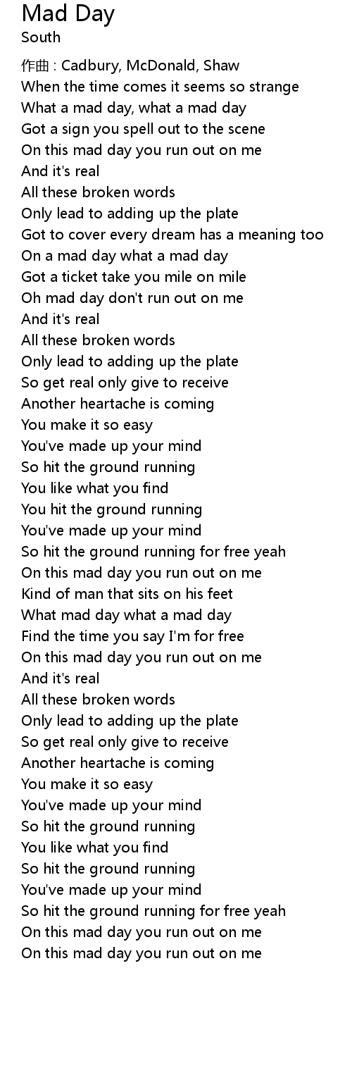 | Oh mad day don't run out on me | |