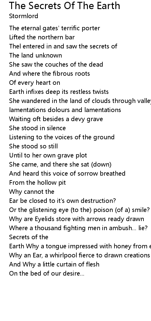 She wandered in the land of clouds through valley dark, listening dolours and lamentations dolours and lamentations |
