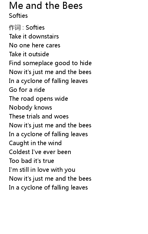| Now it' s just me and the bees | |